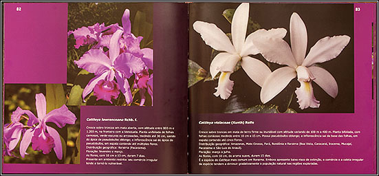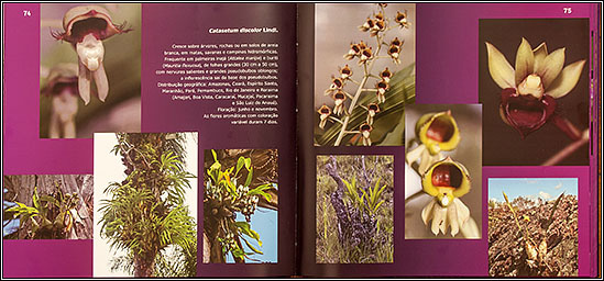 Conteúdo: Introdução (Floresta submontana, Monte Roraima, Savanas, Floresta Tropical, Floresta de transição, Tepequém, Floresta de terra firme, Floresta inundável, Campinara). Cada capítulo sobre as as formações vegetais dos diversos ambientes que compõe a área geográfica do stado é ilustrado por fotografia e inclui também algumas plantas em habitat. Guia de Espécies (página 59 a 179) abrange cerca de 186 espécies dos diversos gêneros: Acianthera, Aganisia, Anathalis, Aspasia,Batemania, Bifrenaria, Braemia, Brassavolva, Brassia, Bulbophyllum, Camaridium, Campylocentrum, Catasetum, Cattleya, Caularthron, Christensonella, Cleites, Cohniella, Coryanthes, Cycnoches, Cyrtopodium, Dichae, Dimerandra, Echinosepala, Elleanthus, Encyclia, Epidendrum, Eriopsis, Erycina, Eulophia, Galeandra, Gongora, Habenaria, Heterotaxis, Ionopsis, Isochilus, Jacquiniella, Koellensteinia, Lepanthopsis, Ligeophila, Lockhartia, Lophiaris, Macradenia, Mapinguari, Masdevallia, Maxillaria, Maxillariella, Mormodes, Notidobulbon, Nohawilliamsia, Notylia, Octomeria, Oeceoclades, Oncidium, Orleanesia, Ornithocephalus, Otostylis, Pabstiella, Persteira, Pescatoria, Phragmipedium, Plectrophora, Pleurothallis, Polystachia, Prosthechea, Pshychopsis, Quequetia, Rodriguezia, Rudofiella, Sacoila, Sarcoglottis, Scaphyglottis, Scuticaria, Schomburgkia, Sobralia, Solenidium, Specklinia, Stanhopea, Stelis, Trichocentrum, Trichosalpinx, Trigonidium, Vanilla, Zygosepalum). Literatura Recomendada. Segundo um de seus autores, Francisco Joaci de Freitas Luz, “o leitor fará uma viagem pela diversidade de ambientes que compõem parte do Escudo das Guianas, conhecendo orquídeas em seu habitat natural”. |