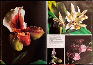 Introdução sobre a família das orquídeas (1 página) e fotografias identificadas de diversas orquídeas cultivadas, com pequenas informações. Não há informações científicas. |